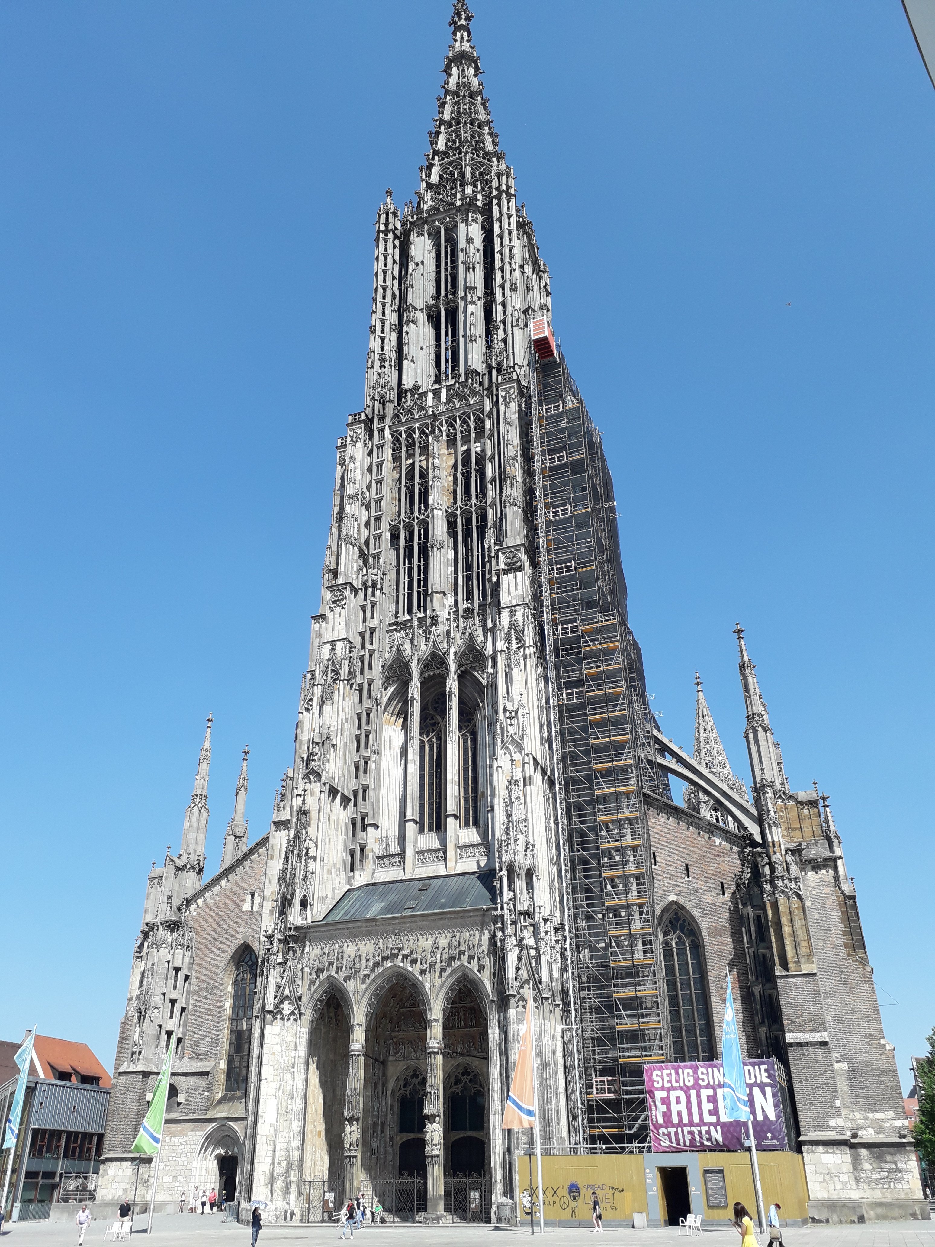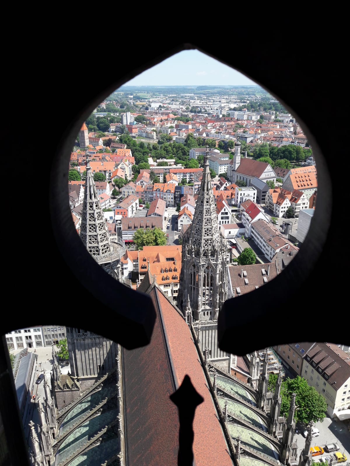 Nach den ersten Blessuren am Hinterteil und mit reichlich Anstrengung haben wir unser Tagesziel Ulm erreicht. Anschließend haben wir im „Ulmer Münster“ den höchsten Kirchturm der Welt mit 768 Stufen bestiegen und haben die fantastische Aussicht auf uns wirken lassen.